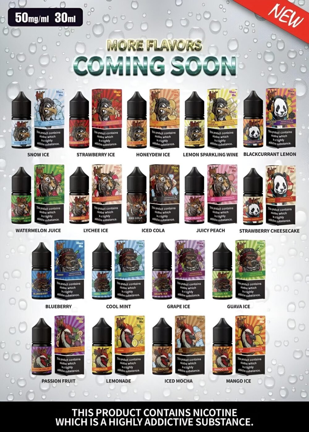 | 口味 | 可樂, 水蜜桃, 深海冰泉, 百香果, 紅星芭樂, 芒果, 草莓, 草莓芝士蛋糕, 荔枝, 葡萄, 薄荷, 藍莓, 西瓜 |