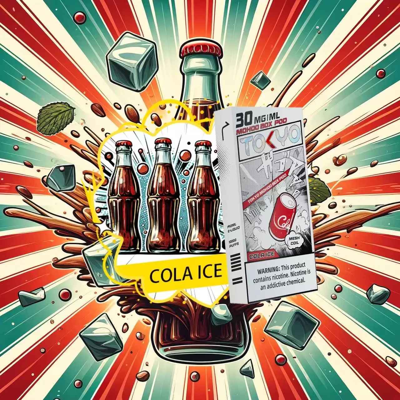 東京魔盒電子煙煙彈 採用植物甘油與丙二醇基底,搭配高純度尼古丁鹽,