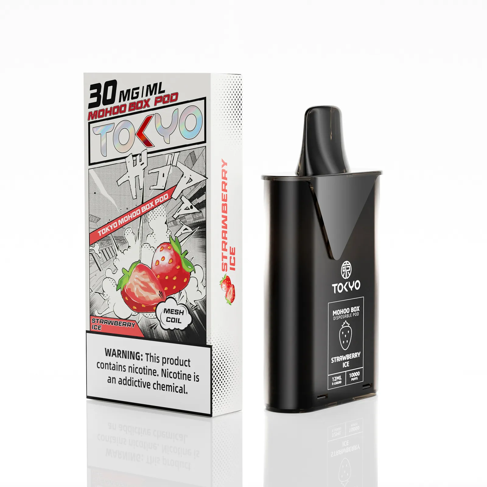 東京魔盒電子煙煙彈採用植物甘油與丙二醇基底,搭配高純度尼古丁鹽,容量 12 mL、尼古丁濃度 3%(30 mg/mL),搭載 1.0Ω 鋼網棉霧化芯,一次性 Pod 設計,約 10,000 口吸引力持久。