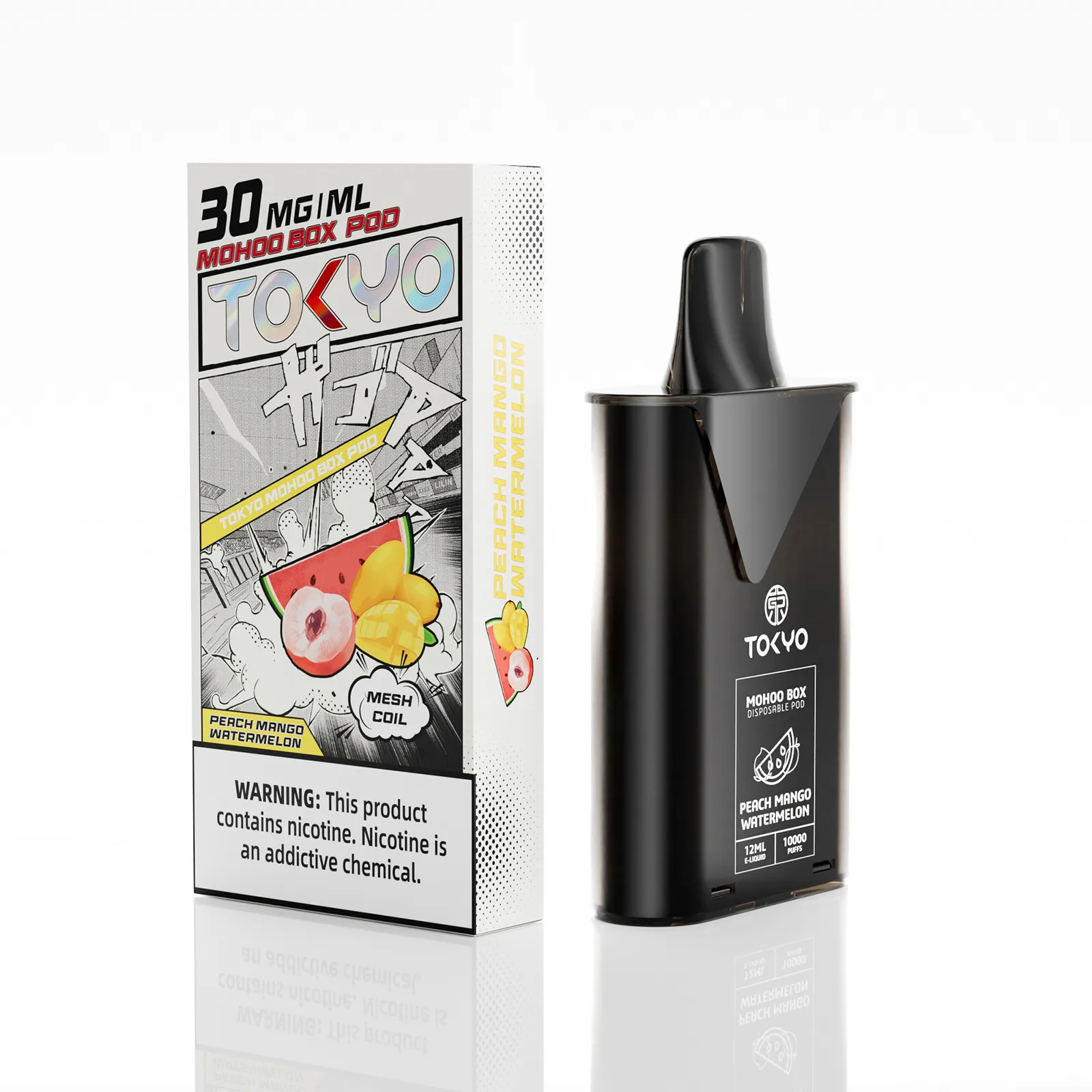 東京魔盒電子煙煙彈採用植物甘油與丙二醇基底,搭配高純度尼古丁鹽,容量 12mL、尼古丁濃度 3%(30mg/mL),搭載 1.0Ω 鋼網棉霧化芯,一次性 Pod 設計,約 10,000 口,吸引力持久。